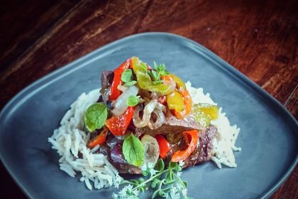 Σε μια κατσαρόλα ζεσταίνουμε το ελαιόλαδο σε δυνατή θερμοκρασία και σοτάρουμε τον πελτέ με το σκόρδο και τα μπαχαρικά. Προσθέτουμε το νερό, τον ζωμό και μαγειρεύουμε σε μέτρια φωτιά, για 15΄.