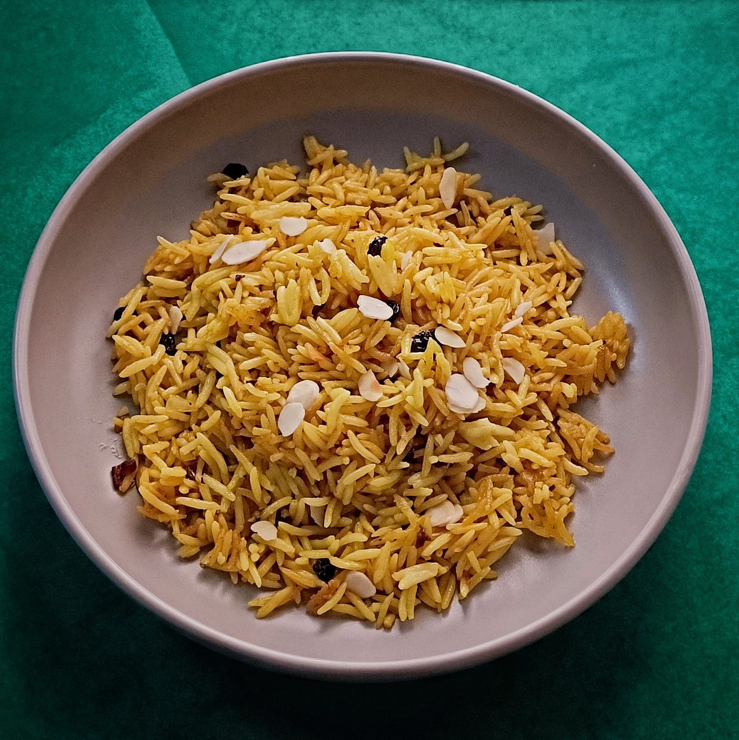 Ξεπλένουμε το ρύζι με νερό και στραγγίζουμε.