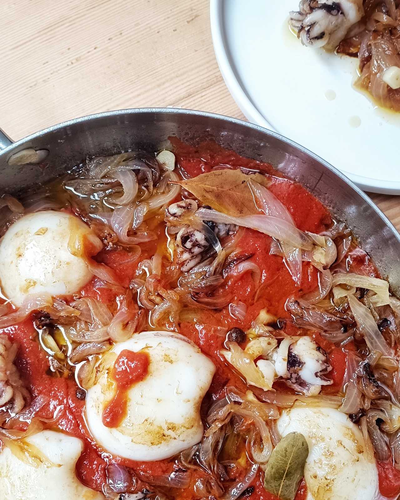 Ρίχνουμε τις σουπιές για 5΄ να πάρουν χρώμα.